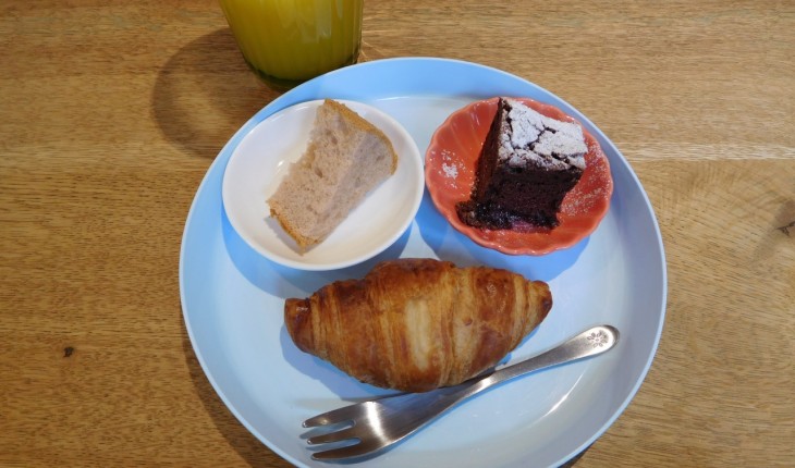赤、水色、青、緑、黄色、白まで、優しくも鮮やかな陶器やガラスの器に盛られた野菜からお肉、パン、ご飯、スープ、ドリンクバー。虹のように並ぶ発酵食を眺め、香りを感じるだけでも、心が優しい気持ちと共にワクワクしてきます。ビュッフェなので、色々なメニューを味わってみました。透明なグラスに盛られたサラダには、食べやすいように小さく細切りにされた新鮮なキャベツと人参、大根、プチトマト。しゃりしゃりなのに柔らかな大根からは、大根本来の甘みを感じました。辛味や苦味は一切なかったので、野菜の苦手な人や子どもでも食べられそうです。他にも、にんじんのタラコ和えやかぶとナスのマリネ等は、味付けがしっかりしながらも、野菜の新鮮なうま味をしっかり引き出していました。メニューには、彩りの発酵野菜から、懐かしい味がするほっこり肉じゃが、あっさりしながらも肉のうま味が口の中に広がる煮込みハンバーグ等、子ども向けのメニューまで、種類はかなり豊富です。最後には、スイーツ好きにはたまらないヘルシーなデザートもいただきました。甘粕のガトーショコラやチョコチップ入りのバナナのパウンドケーキは、ちょうど良い甘さ加減に、しっとりとふわふわの絶妙なバランスを楽しめました。