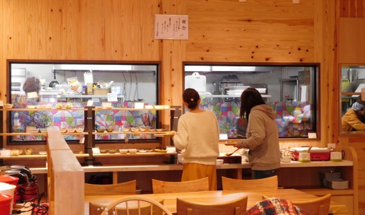 「杜のShokudo」では、セルフサービスを基本とする「ビュッフェ方式」を盛り込むことで、接客の苦手な障害者(利用者さん)も安心して気軽に働くことができるようにしました。利用者さんの主な仕事は、食器の片付けとシェフのサポート付きの調理等です。自分の作ったものが棚に置かれ、それを取ったお客さんが喜んで食べる光景に、利用者さんは達成感と喜びで満たされます。カワセミとはまた一風変わった、ナチュラルで可愛い雰囲気の店内は、主に子育て世代や女性をターゲットにしたスタッフのこだわりによって生まれました。ゆっくり落ち着ける雰囲気が魅力の杜のShokudoですが、課題と目標もあります。今後は、予約制を取ることによって、利用者さんが予め調理数を把握して働きやすくする他、より多くの色々な客が訪れるために回転率を向上させていくことを目指しています。